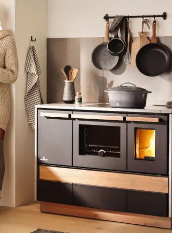 Vous cherchiez une cuisinière ? Vous avez trouvé un chauffage central ! C’est la cuisinière à chauffage central de dernière génération. Elle peut faire cuire, frire, bouillir de l’eau et chauffer toute la maison, puisqu’elle peut s’accorder directement au circuit d’eau. Encore mieux, grâce à elle, vous économisez de l’électricité et réduisez vos coûts énergétiques. Pour faire court, votre cuisinière est un véritable tout en un !